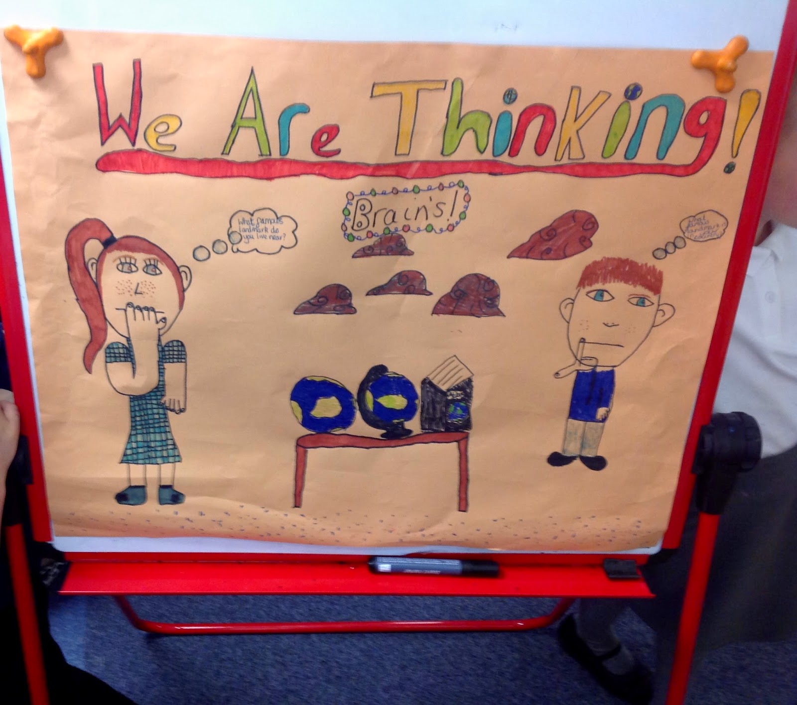 In our class room we had mappers, runners, clue keepers, photoghraphers, greeters and question keepers.This is one of us thinking.